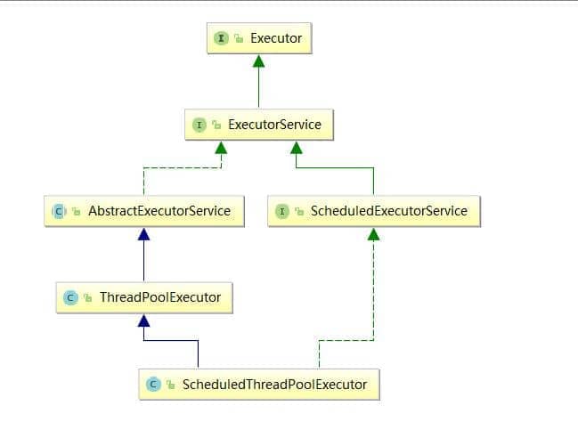 如下图所示,包括任务执行机制的核心接口Executor,以及继承自Executor接口的ExecutorService接口。ThreadPoolExecutor和ScheduledThreadPoolExecutor这两个关键类实现了ExecutorService接口。
