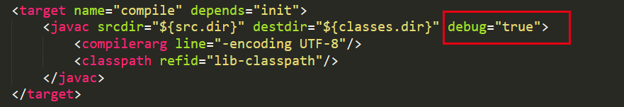 在ant脚本中compile命令里的javac命令中添加dubug=true即可